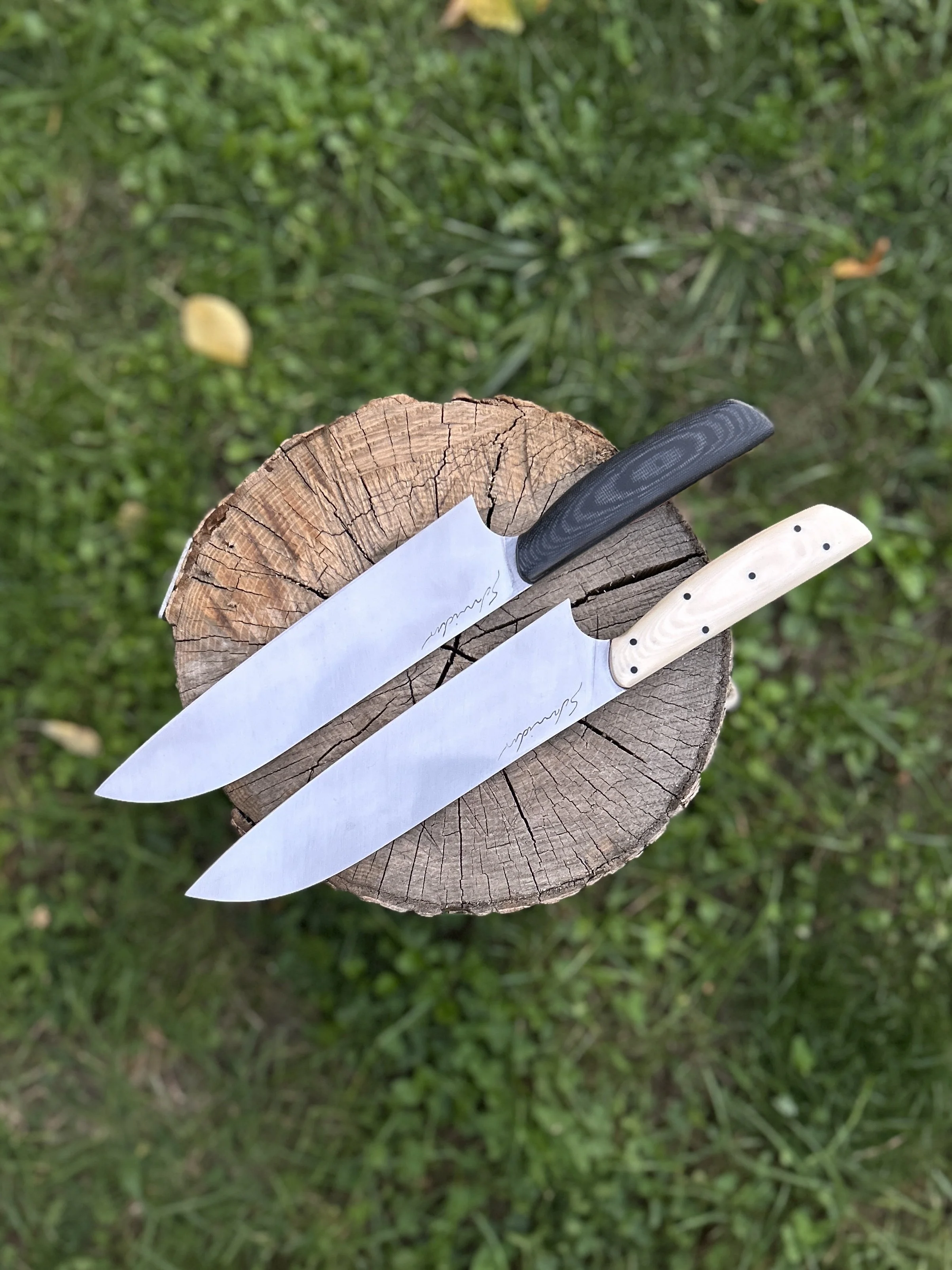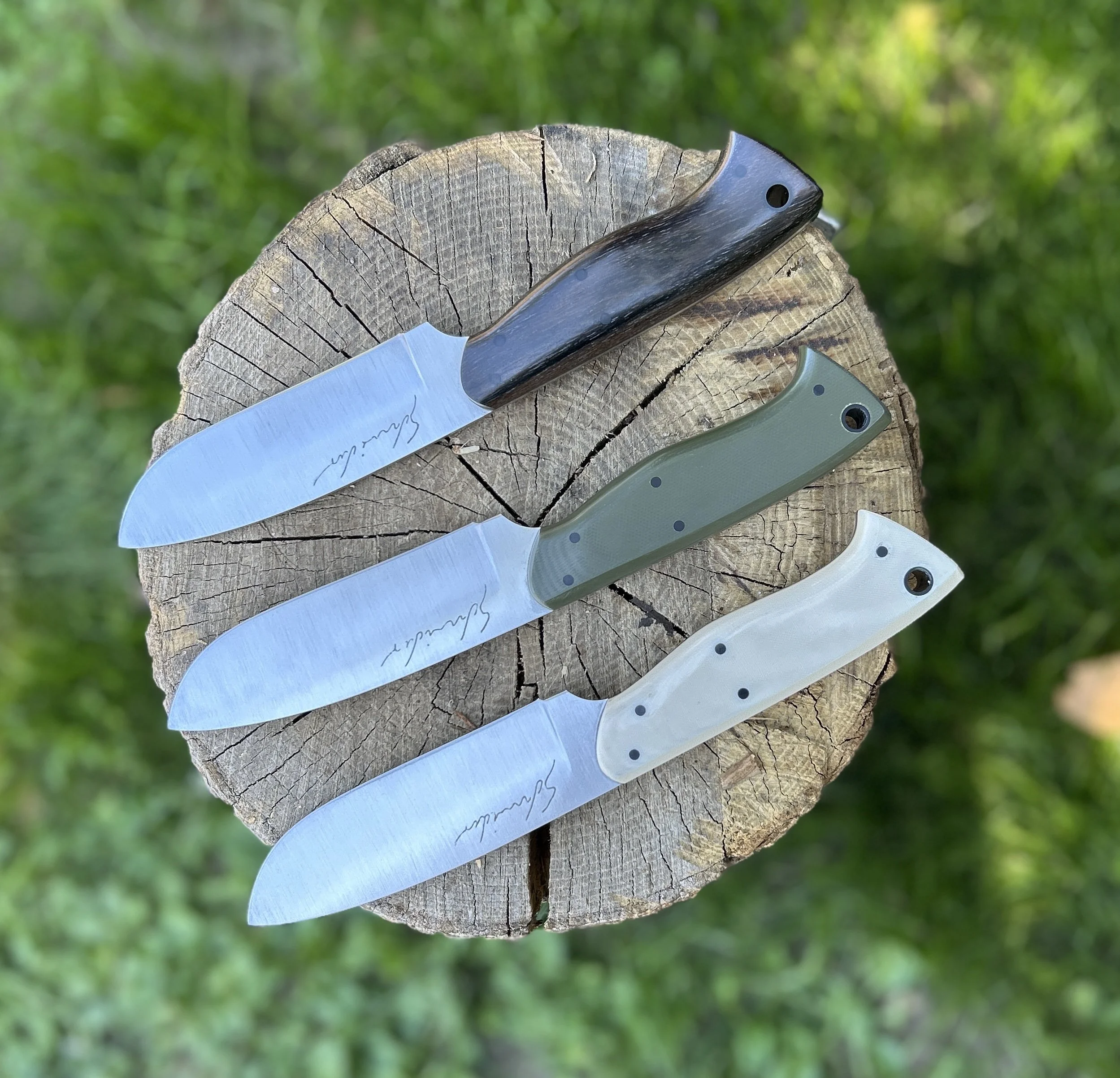Késeim mind egyedileg készült darabok, a készítés során minden munkafolyamatot magam végzek, a penge kovácsolásától a markolat készítésen keresztül egész a tokozásig.